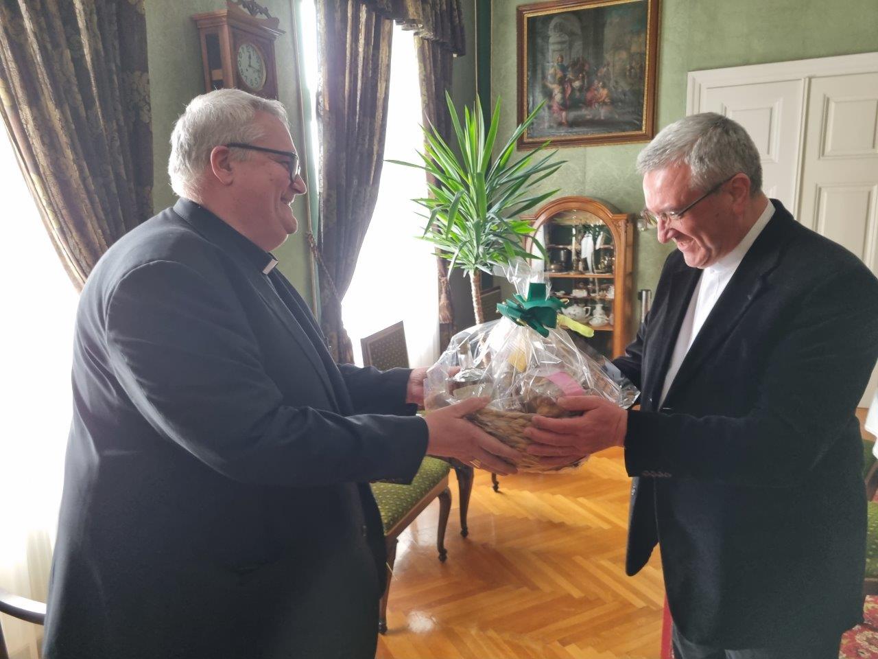 V ponedeljek, 10. januarja 2022, se je škof msgr. dr. Peter Štumpf na škofiji v Györu srečal s tamkajšnjim škofom in predsednikom Madžarske škofovske konference, msgr. dr. András Veresom. Škof Štumpf je v imenu Slovenske škofovske konference kot gostitelj letošnjega srečanja Slovencev in Hrvatov v Beltincih, 8. oktobra 2022, povabil škofa Veresa ter druge madžarske škofe, duhovnike in druge vernike na to srečanje. V škofiji Murska Sobota namreč živi precej madžarsko govorečih vernikov, največ na področju župnij Lendava in Dobrovnik. Ti verniki so zelo versko in kulturno dejavni, in imajo pri tem veliko podporo tamkajšnjih župnikov, Martina Dolamiča in mag. Simona Štihca, ki v njihovo duhovno dobro pastoralno sodelujeta tudi z madžarskimi duhovniki iz sombotelske škofije. Za obe škofiji, Murska Sobota in Sombotel, je to velika vrednost, še zlasti v teh časih, ko smo kristjani v molitvi in pogovorih skupaj na sinodalni poti vere.