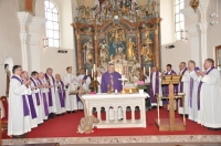 Občni zbor sodelavcev karitasa se je začel s sveto mašo, ki jo je v župnijski cerkvi sv. Mihaela daroval škof msgr. dr. Peter Štumpf.
