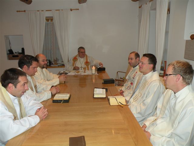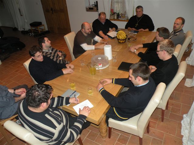 Nadaljevali so s pogovorom o vsebini tokratnega srečanja, ki je bila vodenje župnijske blagajne in upravljanje z osebnimi in župnijskimi financami. Izhodiščno predavanje sta imela g. Andrej Zrim in škofijski ekonom g. Alojz Benkovič, ki je bil gostitelj tokratnega srečanja. V razgovoru o predstavljeni temi so mlajši duhovniki ugotavljali nujnost transparentnega upravljanja s financami. Predlagali so, da bi tovrstna tematika bila dobrodošla tudi ostalim duhovnikom. Koristno pa bi bilo, če bi o tem bili seznanjeni tudi župnijski Gospodarski sveti.