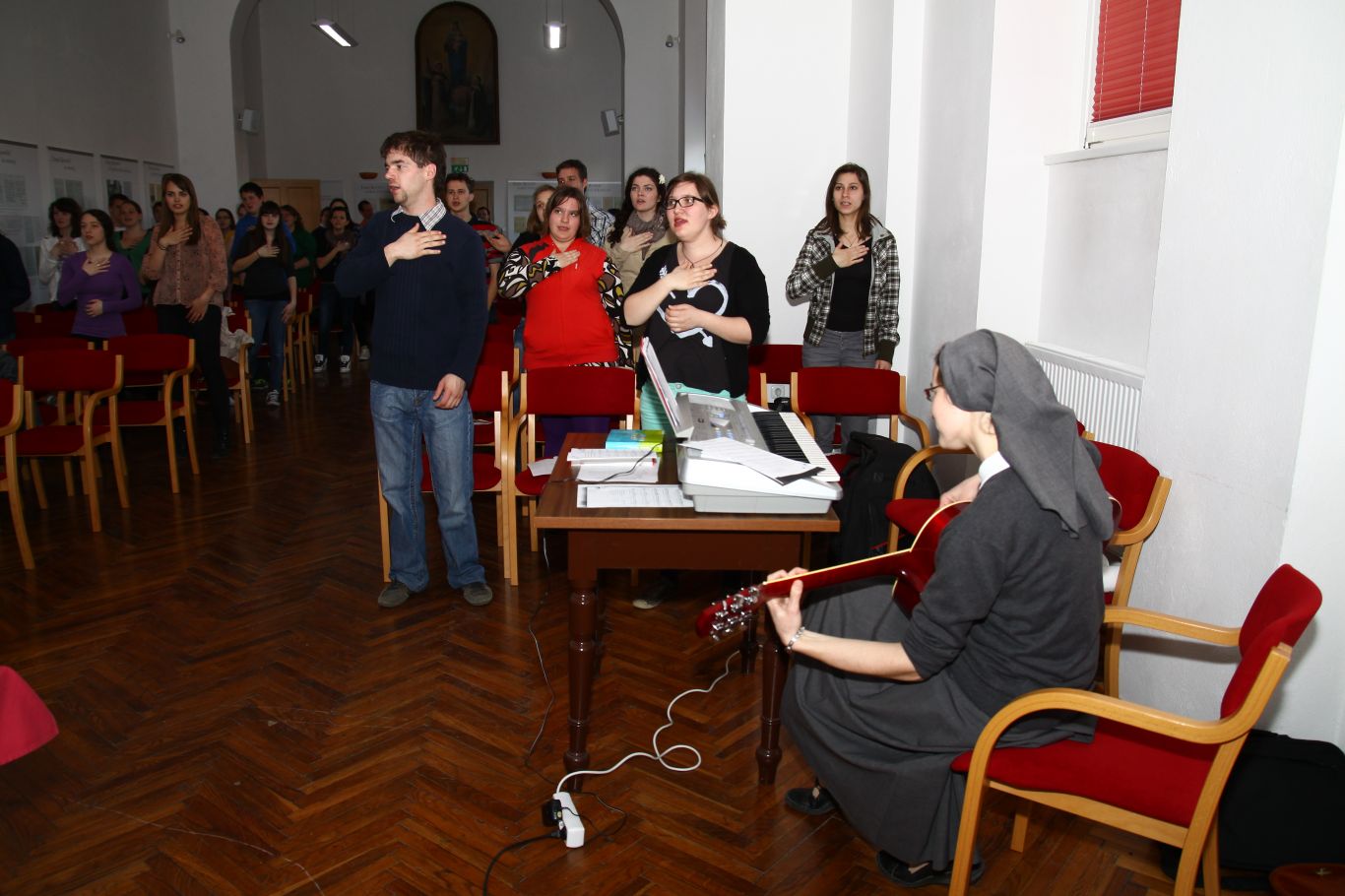Komaj smo zakorakali v pomlad se že veselimo poletja, ko se bodo pričeli oratoriji in bodo župnijska dvorišča polna veselih otok. S tem namenom smo se animatorji soboške škofije dobili v nedeljo, 25. 3. 2012 v Veržeju, na Pomladanskem srečanju animatorjev oratorija in hkrati tudi predstavitvi oratorijskih gradiv. Bilo nas je okrog 70 navdušenih animatorjev iz kar enajstih župnij. Po uvodnem pozdravu smo si ogledali kratek film o Marijanišču Veržej, ki letos praznuje 100 let obstoja. Sledila je adoracija pred Najsvetejšim. Letošnja glavna junakinja je, ustanoviteljica skupnosti Hčere Marije Pomočnice, sveta Marija Dominika Mazzarello. Njeno življenje in nekaj spodbud za oratorij sta nam podali s. Simona in s. Mateja. K vsakemu oratoriju spada tudi himna in letos lahko izbiramo kar med dvema himnama in koreografijama, kateri smo se naučili na srečanju. Animatorji smo se nato razdelili v delavnice in si nabrali novih idej za pripravo katehez, iger in gradili na osebni rasti v delavnici ?kako moje delo odmeva v drugih?. Voditelji animatorjev in oratorijev pa smo si podelili svoje izkušnje iz lanskega oratorija in začrtali nekaj smernic za Združenje animatorjev oratorija v naši škofiji. Srečanje smo zaključili z molitvijo in druženjem.