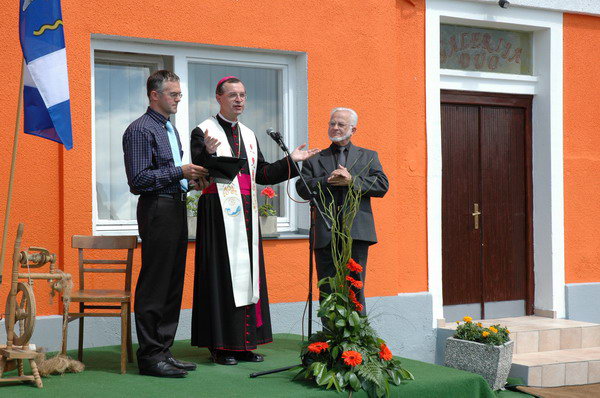 Center DUO, Center za izobraževanje, trženje, promocijo, informacije ter druženje in združevanje je začel uradno delovanje z današnjo otvoritvijo ob 11. uri s priložnostno prireditvijo na stičišču Salezijanskega zavoda, osnovne šole in vrtca Veržej ter župnijsko cerkvijo. Prve obnovljene prostore prodajno razstavnega prostora je blagoslovil in predal uporabi škof ordinarij msgr. dr. Marjan Turnšek. Poleg uglednih gostov krajevne in državne oblasti, slavnostnega govornika in študijskega mentorja dr. Janeza Bogataja, so bili navzoči tudi učenci OŠ Veržej, katerih smo bili še posebej veseli, saj Center DUO postaja zanimivo učno področje in za marsikoga tudi vir zaslužka za bodočnost. Dr. Bogataj je izrazil posebno veselje ob tem prvem, zares celovitem centru domače in umetnostne obrti v Sloveniji in pohvalil vse, ki verjamejo v ta projekt, ki ga smelo začenjajo in ga tudi podpirajo. Osnovni namen centra je, da sami sebi dokažemo ustvarjalnost in nato oz. zato postanemo zanimivi tudi v širšem evropskem prostoru. Nakazal je 3 obvezne dejavnosti ali poti, ki naj jih zasledujemo: domačo dediščino je potrebno ne le zabeležiti, da se ne pozabi, ampak jo prenesti na nove rodove; ob tem moramo iskati nove ustvarjalne možnosti in to dediščino nadgraditi; končno moramo graditi iz novih idej. Vnašanje duhovnih vrednot kontinuitete, istovetnosti in alternative pomeni zagotavljati kakovost življenja.