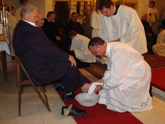 Med sveto mašo je škof Turnšek dvanajstim prostovoljcem umil noge in s tem pokazal na simbolni pomen umivanja nog, ko je Kristus pri zadnji večerji učencem umil noge.
