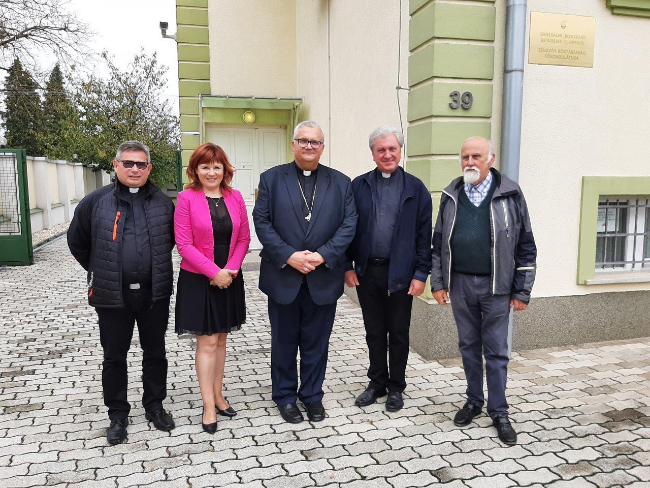 V ponedeljek, 11.oktobra 2021, je soboški škof msgr. dr. Peter Štumpf na povabilo generalne konzulke Republike Slovenije, gospe Metke Lajnšček, obiskal sedež generalnega konzulata v Monoštru. Pri obisku so se mu pridružili duhovniki, ki pomagajo pri dušnopastirski oskrbi porabskih Slovencev, msgr. Franc Režonja, škofov vikar za narodnosti; markovski župnik Dejan Horvat in dolenski župnik Vili Hribernik. Generalna konzulka je škofu in prisotnim duhovnikom predstavila trenutni položaj Slovencev v Porabju, njihova prizadevanja za ohranitev slovenstva in pomen Katoliške Cerkve pri ohranjanju narodnostne in verske identitete v Porabju. Pogovor je tekel tudi o šolanju otrok in mladih v slovenskem jeziku. Pri tem se je ponovno izpostavila nujnost poučevanja verouka v slovenščini, kar pa pomeni širšo zasnovano dejavnost, v smislu animacije odgovornega in kompetentnega pedagoga, ki bo znal mlade nagovarjati za verske in tudi kulturne vrednote. Tudi v Porabju je za slovenstvo sedaj prelomno obdobje, in je zato potrebno glede verskega pedagoga potrebno čimprej uresničiti načrte. Generalna konzulka je škofa in duhovnike povabila na obisk uredništva časopisa Porabje, slovenskega radia Monošter ter slovenskih krovnih organizacij. Škof in duhovniki so se s predstavniki slovenskih institucij zadržali v daljšem pogovoru in ugotovili večjo pozornost madžarske in slovenske države za lažje družbeno in kulturno delovanje v tem območju. Zaradi večje učinkovitosti pri delovanju sledi kmalu podobno srečanje v širši narodnostni sestavi.
