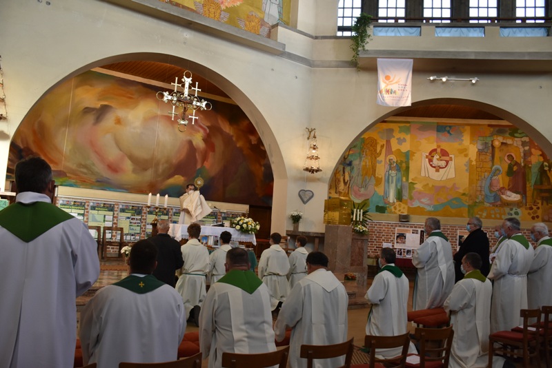 Škof dr. Peter Štumpf, duhovniki soboške škofije, sodelavci Stopinj in drugi so se v nedeljskem popoldnevu zbrali v župnijski cerkvi Svete Trojice v Odrancih k praznovanju 50-letnice zbornika Stopinje. Bogoslužje se je začelo s kratko molitvijo pred Najsvetejšim, nadaljevalo pa s sveto mašo, med katero je zbrane nagovoril škof dr. Peter Štumpf. To je bila tudi sveta maša ob začetku sinode, zato je škof najprej spregovoril o tem dogajanju, ki želi prenoviti posameznika, skupnosti in vesoljno Cerkev. Ob koncu bogoslužja je škof dr. Peter Štumpf Stopinjam podelil najvišje škofijsko odlikovanje, odličje svetega Metoda. V utemeljitvi je izpostavil: »Stopinje so vsa leta v naše domove prinašale bogato in pestro vsebino. Bralce so bogatile z verskimi oz. duhovnimi zapisi, s pogledom v preteklost, prinašale so lepo besedo v pesmi in prozi, zapise o življenju v naših župnijah in še marsikaj. Stopinje so oblikovale pastoralni prostor, povezovale duhovnike, druge oznanjevalce in vse vernike, da je lahko leta 2006 zaživela Škofija Murska Sobota. Pripomogle so tudi k prepoznavanju svetosti, saj so pisale o Božjem služabniku Danijelu Halasu in zdaj lahko spremljamo tudi škofijski postopek za beatifikacijo zavzetega sodelavca in urednika Stopinj Alojzija Kozarja. Stopinje so v petdesetih letih postale dragocena zakladnica podatkov, misli in idej. Brez njih bi si življenje v naši škofiji težko predstavljali.« Poleg škofijskega odlikovanja Stopinjam je škof podelil sedanjemu uredniku Lojzetu Kozarju »posebno škofijsko priznanje in zahvalo za njegovo dolgoletno in vztrajno urednikovanje« in zlato pero. Škof pa je v zahvalo prejel spominek: v eno stopinjo združenih petdeset Stopinj.