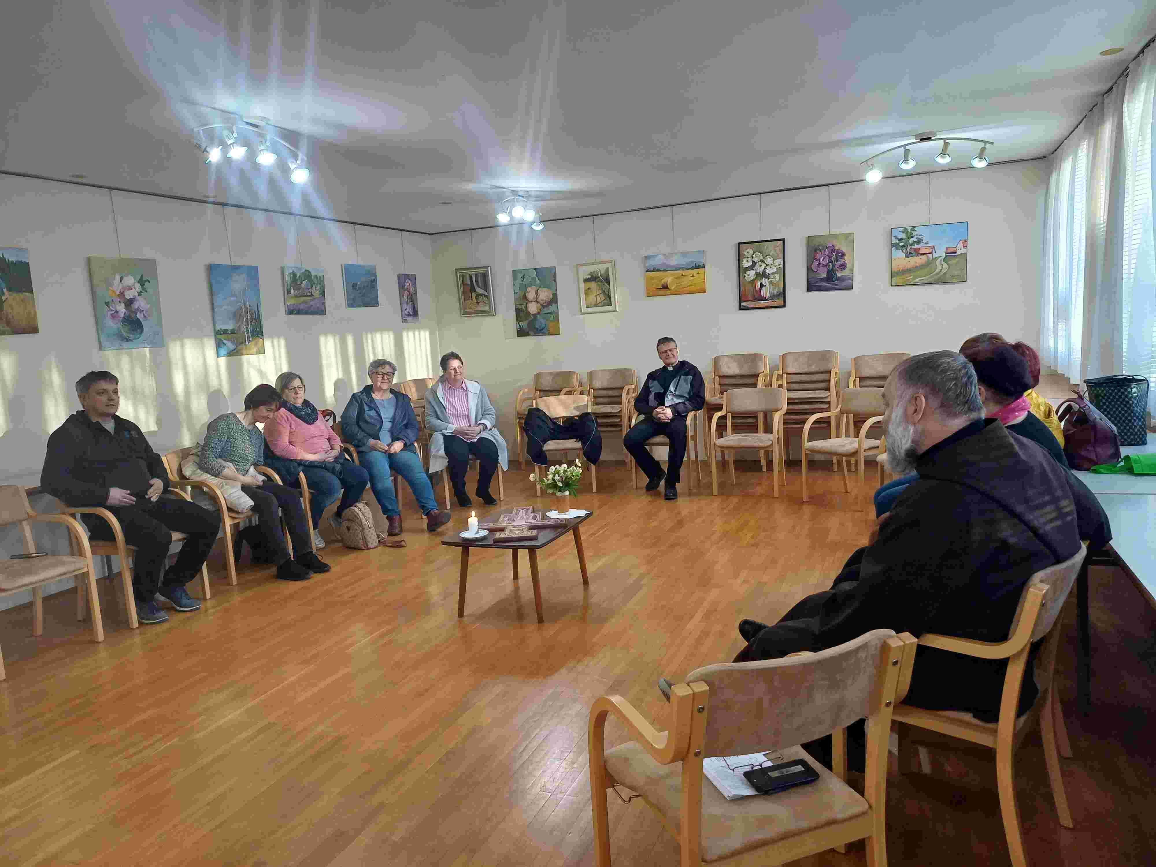 Na cvetno sredo, 9. aprila 2025, smo se kateheti, katehistinje in slušatelji Katehetsko pastoralne šole zbrali v Kančevcih na postni duhovni obnovi. Duhovni nagovor je imel br. Jaro Knežević. Udeleženci smo lahko prejeli zakrament svete spovedi in molili pred Najsvetejšim. Sveto mašo je daroval gospod Franc Zorec. Srečanje smo zaključili pri mizi v jedilnici doma duhovnosti s hrano iz "nahrbtnikov". Vsak udeleženec je prinesel nekaj malega hrane in položil na skupno mizo. Imeli smo pravo gostijo.