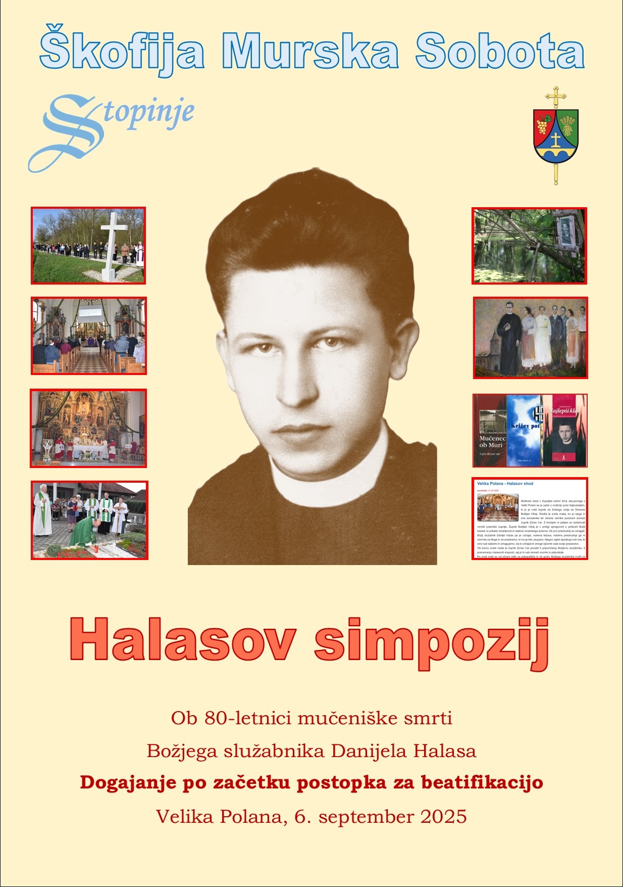Stopinje, ki delujejo v okviru Škofije Murska Sobota, organizirajo simpozij ob 80-letnici smrti Božjega služabnika Danijela Halasa. Simpozij bo potekal v soboto, 6. septembra 2025 v Veliki Polani. Predstavil bo dogajanje po začetku postopka za beatifikacijo Božjega služabnika Danijela Halasa. Vsebino bo predstavilo trinajst predavateljev.