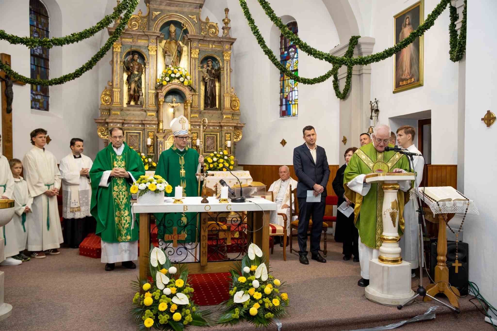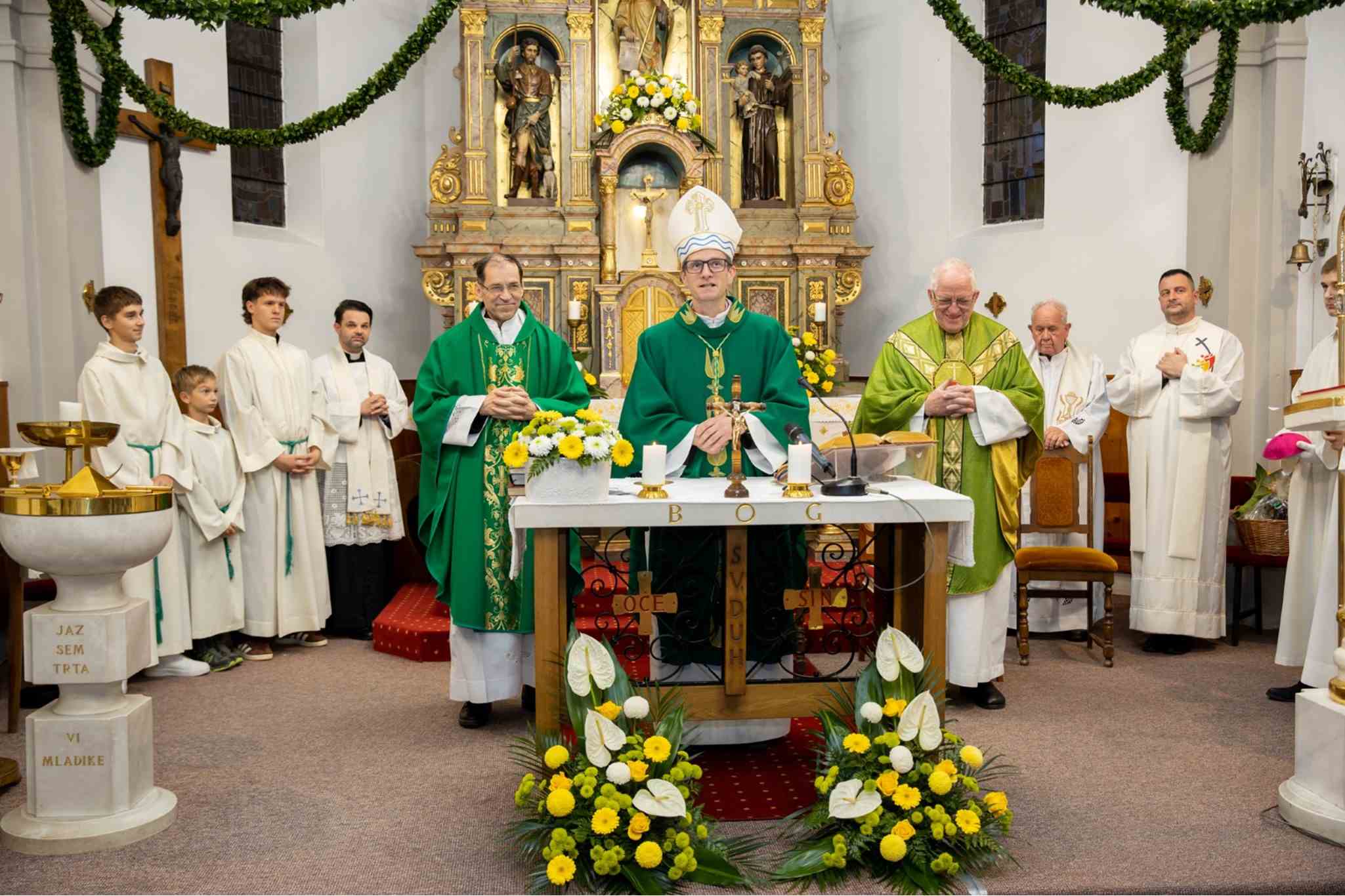 Bratje in sestre, najprej pozdravim gospoda župnika, gospoda Alojza, ki vas je tukaj zbiral, kakor sem videl, že od srede naprej. Da ne bi to slovesnost omejili zgolj na današnji dan, ampak da ste imeli v teh dneh že priložnost, povabilo, da bi predvsem obnavljali tempelj svojega telesa, v katerem prebiva Sveti Duh, kakor pravi apostol Pavel. Lepo pozdravljam tudi generalnega vikarja, gospoda domačina Janeza, ostale duhovnike in predstavnike drugih krščanskih veroizpovedi. Brez vseh vas skupaj Cerkve, tega živega občestva, živih kamnov, ne bi bilo.