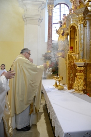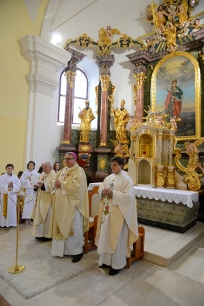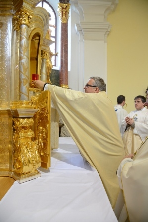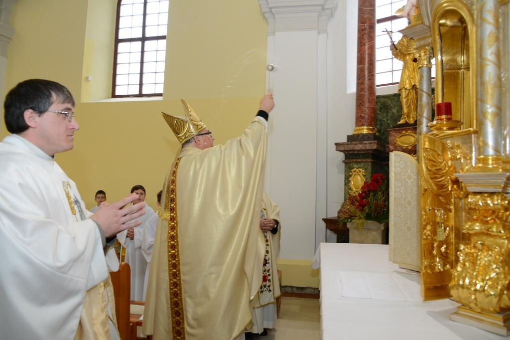 Na drugo adventno nedeljo, 8. decembra 2013, na sam praznik Marijinega brezmadežnega spočetja, je bilo v župnijski cerkvi v Lendavi še posebej slovesno. Ob 11. uri je gospod škof dr. Peter Štumpf ob somaševanju domačih in okoliških duhovnikov daroval svečano sveto mašo, med katero je blagoslovil obnovitvena dela na glavnem oltarju zavetnice župnijske cerkve svete Katarine Aleksandrijske ter tabernakelj, v katerega je prvič shranil Najsvetejše, živega Jezusa, ki je tam v podobi kruha (kot je g. škof v pridigi poudaril) za vse lendavčane. Ob tem gre poudariti, da gre v Lendavi za sožitno življenje več kultur, ki se zbirajo ob istem oltarju, in da so verniki s tem, da so v letu vere po tristotih letih temeljito obnovili kulturno dediščino naših prednikov, poživili svojo pripadnost v Kristusa. Med svečano dvojezično mašo so prepevali otroški pevski zbor, slovenski in madžarski pevski zbor. Svoje zahvale in prošnje z darovi pa so Bogu izpovedali predstavniki različnih skupin, ki delujejo v župniji, in s tem pričevanjem dokazali, da je Lendava ?živa? župnija. Po sveti maši se je lahko vsak sprehodil okrog glavnega oltarja, za kar je prejel spominsko podobico. Po slavnostni maši je sledilo druženje v šotoru ob cerkvi, za organizacijo pogostitve so ob pomoči gospodinj iz župnije poskrbeli člani župnijskega pastoralnega sveta in članice Karitasa.