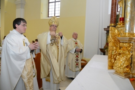 Na drugo adventno nedeljo, 8. decembra 2013, na sam praznik Marijinega brezmadežnega spočetja, je bilo v župnijski cerkvi v Lendavi še posebej slovesno. Ob 11. uri je gospod škof dr. Peter Štumpf ob somaševanju domačih in okoliških duhovnikov daroval svečano sveto mašo, med katero je blagoslovil obnovitvena dela na glavnem oltarju zavetnice župnijske cerkve svete Katarine Aleksandrijske ter tabernakelj, v katerega je prvič shranil Najsvetejše, živega Jezusa, ki je tam v podobi kruha (kot je g. škof v pridigi poudaril) za vse lendavčane. Ob tem gre poudariti, da gre v Lendavi za sožitno življenje več kultur, ki se zbirajo ob istem oltarju, in da so verniki s tem, da so v letu vere po tristotih letih temeljito obnovili kulturno dediščino naših prednikov, poživili svojo pripadnost v Kristusa. Med svečano dvojezično mašo so prepevali otroški pevski zbor, slovenski in madžarski pevski zbor. Svoje zahvale in prošnje z darovi pa so Bogu izpovedali predstavniki različnih skupin, ki delujejo v župniji, in s tem pričevanjem dokazali, da je Lendava ?živa? župnija. Po sveti maši se je lahko vsak sprehodil okrog glavnega oltarja, za kar je prejel spominsko podobico. Po slavnostni maši je sledilo druženje v šotoru ob cerkvi, za organizacijo pogostitve so ob pomoči gospodinj iz župnije poskrbeli člani župnijskega pastoralnega sveta in članice Karitasa.