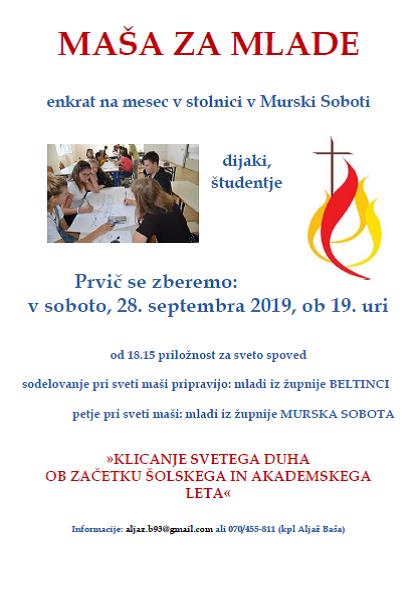 sodelovanje pri sveti maši pripravijo: mladi iz župnije BELTINCI