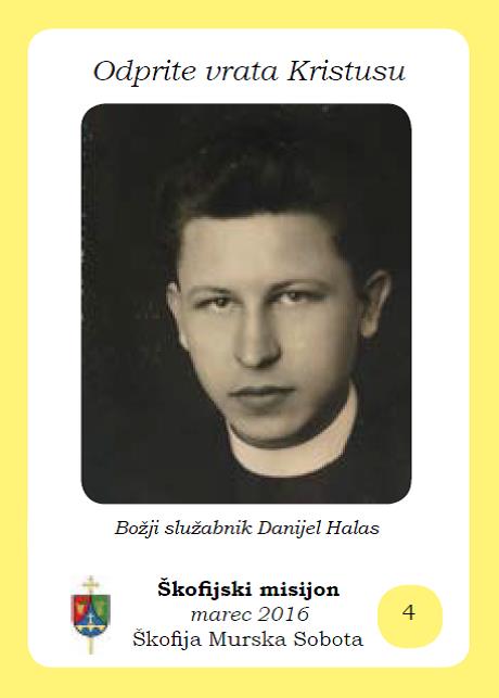 Božji služabnik Danijel Halas nam je svetel zgled prenašanja težav in hoje tudi po poti trpljenja. Prosimo Boga, naj nas okrepi s svojo milostjo, da bi zmogli stopati skozi vrata trpljenja in smrti v radost večnega življenja." Lojze Kozar ml., Odprite vrata Kristusu