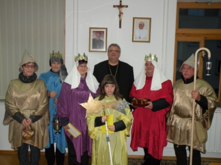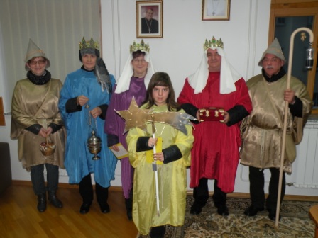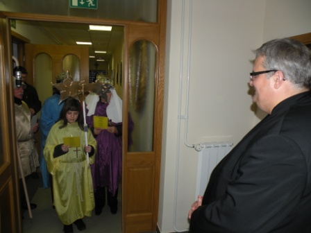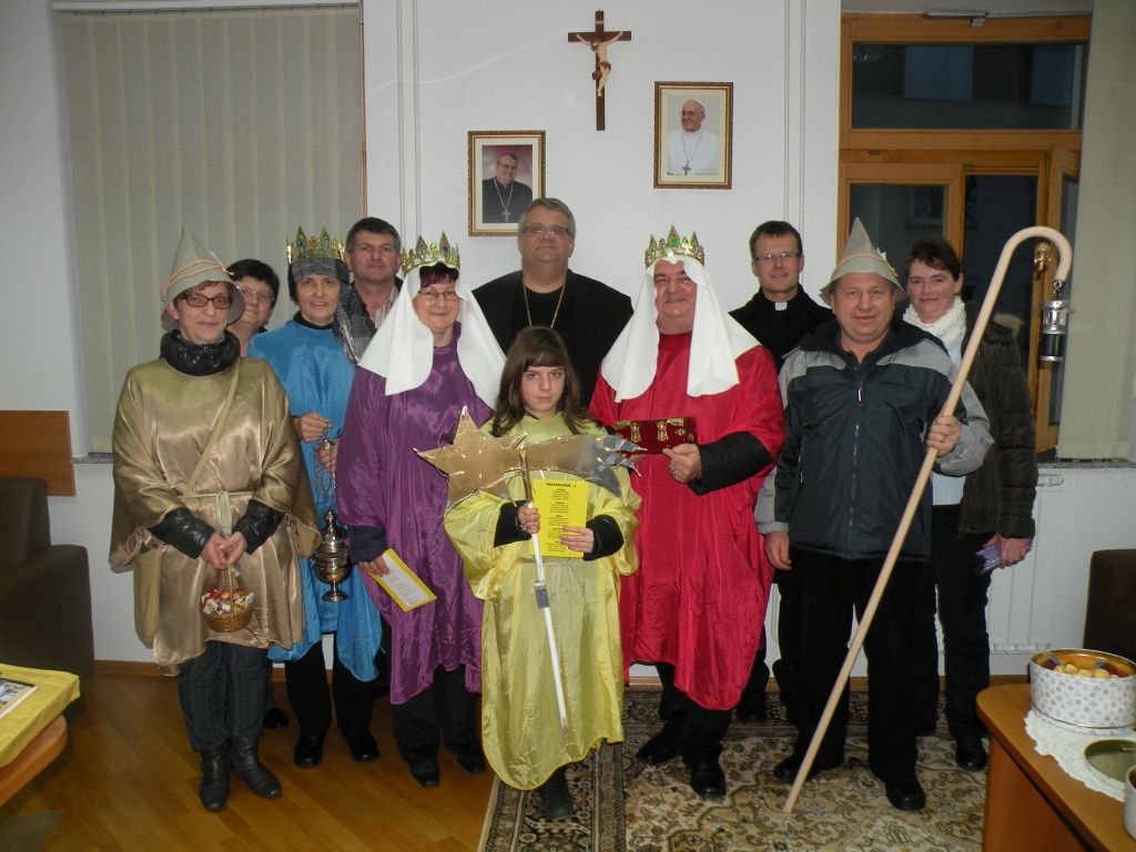 Na predvečer Gospodovega razglašenja so g. škofa obiskali koledniki iz Bakovec. Zapeli so koledniško pesem Svetla zvejzda in prinesli oznanilo Gospodovega rojstva ter voščilo, da bi se ?božično praznovanje nadaljevalo skozi vse leto! Da bi prižgali luč miru, ljubezni in dobrote v svetu. Ter da bi novo leto 2014 bilo polno ljubezni, ki se uresničuje v preprosti dobrohotnosti na vsakem koraku.?