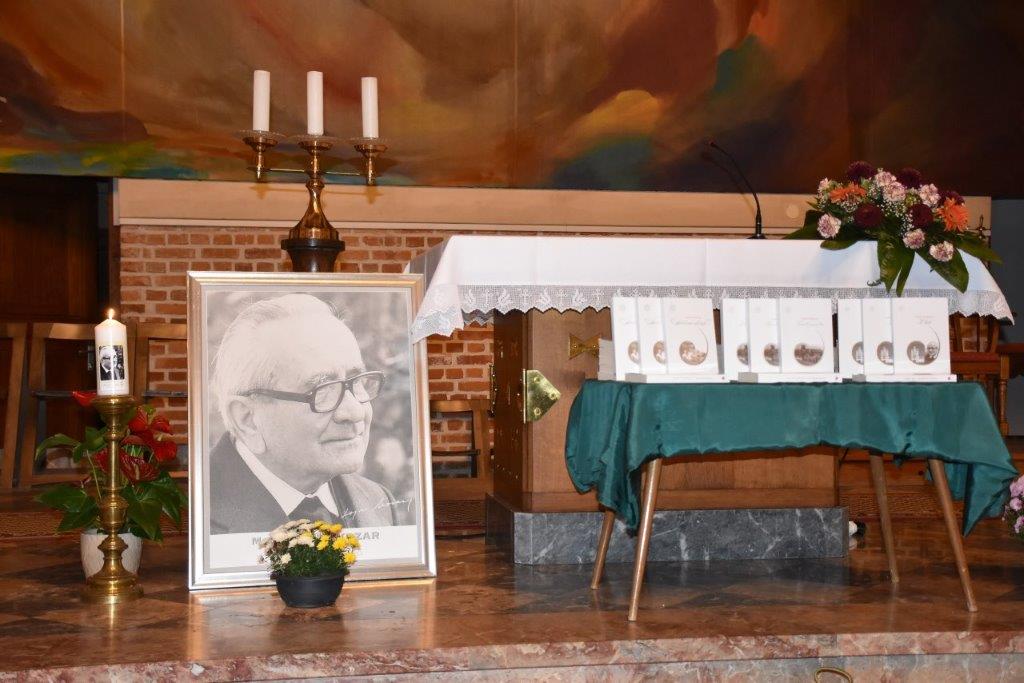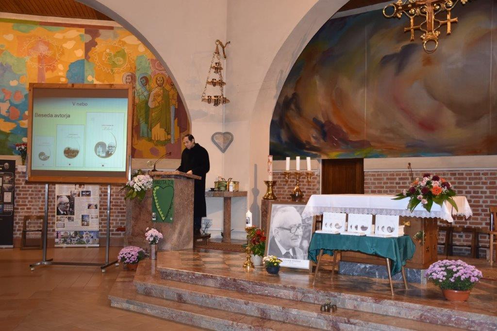 S pesmijo Prelepo ravno je polje so pevci in vsi zbrani uvedli v predstavitev trilogije V nebo, ki opisuje Božjega služabnika Alojzija Kozarja. Trilogijo je izdala Celjska Mohorjeva družba, zato je najprej o založbi, o Božjem služabniku in o treh knjigah o njem, spregovorila ravnateljica dr. Tanja Ozvatič. Poudarila je pomen lepe besede, ki jo je zapisoval tudi Božji služabnik in v težkih časih po drugi svetovni vojni ljudi krepil in dvigal. Predstavitev je povezovala članica ŽPS in postulatorka Klavdija Dominko, odlomke iz treh knjige so prebrale Štefanija Hozjan, Marija Zver in Nina Zver. Vmes so vsi zbrani zapeli nekaj kitic pesmi, ki povzemajo poglavja v knjigi K luči. O nastajanju trilogije in njeni vsebini je spregovoril avtor Lojze Kozar ml. Poudaril je, da prva knjiga z naslovom Srebrni deček opisuje otroštvo in mladost Božjega služabnika Alojzija Kozarja, v drugi knjigi Zlati pastir, Božji služabnik sam pripoveduje o svojem življenju in delu vse od prve kaplanske postaje v Trbovljah do Odranec, kjer se je srečeval z mnogimi velikimi težavami, a ga nič ni strlo ali odvrnilo od njegovega poslanstva. Tretja knjiga, K luči, opisuje dogajanje na zemlji in v nebesih po smrti Božjega služabnika. Vse tri knjige želijo bralca spodbuditi za pogumno hojo k luči, k Njemu, ki nas spremlja na tej poti in nas pričakuje na cilju, kjer se že veselijo mnogi zveličani, med njimi gotovo tudi Božji služabnik Alojzij Kozar.