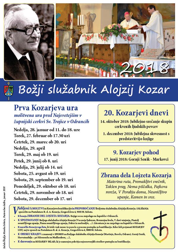 Prva Kozarjeva ura je vsakega 29. v mesecu ob 18. uri (v poletnem času ob 19. uri), ko v župnijski cerkvi v Odrancih pred Najsvetejšim molimo za beatifikacijo naših slovenskih svetniških kandidatov, predvsem Božjega služabnika Danijela Halasa in Božjega služabnika Alojzija Kozarja.