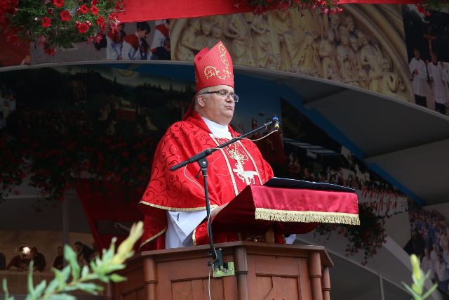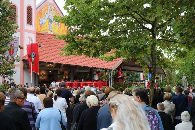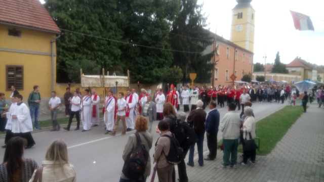 Na ?sveto soboto?, 2. septembra, so v Ludbreg poromali številni romarji iz Hrvaške, Slovenije, Madžarske in Avstrije. Okrog 20.000 romarjev iz različnih krajev in držav se je zbralo iz pobožnosti v čast Presveti Kristusovi Krvi. Na ?sveto soboto? že tradicionalno romarji romajo z avtobusi iz številnih župnij, skupaj s svojimi župniki iz vseh krajev Hrvaške in sosednjih držav v Ludbreg. Od zgodnjih jutranjih ur so romarji imeli priložnost za sveto spoved in za svete maše. Sveto mašo ob 11. uri je vodil škof msgr. dr. Peter Štumpf ob somaševanju domačega varaždinskega škofa msgr. Josipa Mrzljaka in skupaj z okrog 150 duhovniki. Pred sveto mašo je bila velika procesija z ampulo Presvete Kristusove Krvi, od župnijske cerkve Svete Trojice do ?Zavjetne kapele?. Pred začetkom svete maše so vse navzoče pozdravili župnik in upravitelj svetišča v Ludbregu msgr. Josip Đurkan, župan Ludbrega g. Dubravko Bilić in varaždinski škof msgr. Josip Mrzljak. Gospod škof msgr. Peter Štumpf je maševal in pridigal v hrvaškem jeziku. V pridigi je naglasil, da je povabilo v Ludbreg, da vodi to sveto mašo in pridiga, za njega poseben Božji dar. Škofove besede so se nanašale na prebrane odlomke Božje besede in na izkazovanje pobožnosti Presveti Kristusovi Krvi. Škof se je dotaknil tudi prijateljstva varaždinske in soboške škofije, prijateljstva Hrvatov in Slovencev. Poudaril je, da je dober sosed boljši kot rodbina: ?Hrvati in Slovenci smo sosedje. Dober sosed velja več kot vsa rodbina. Tako kot lahko pomagamo drug drugemu, nam v Evropi nihče ne bo pomagal.? Gospod škof je tudi spregovoril o blaženem kardinalu Alojziju Stepincu, izrazil je tudi hvaležnost, da je kardinal Stepinac ?med 2. svetovno vojno sprejel v svojo škofijo več kot tristo slovenskih duhovnikov, večinoma iz mariborske nadškofije, ki so bili izgnani pod pritiskom nemške vojske ter jim zagotovil pastoralno življenje.? Ob koncu pridige je gospod škof v imenu slovenskih škofov in vernega slovenskega naroda vse povabil na srečanje hrvaških in slovenskih katoličanov, ki bo 14. oktobra 2017 v Stični v Sloveniji. Na koncu pa je vse izročil v varstvo Matere Marije Bistriške. Opaziti je bilo navdušenje nad pridigo gospoda škofa, saj je ob koncu pridige dobil aplavz od vseh zbranih.