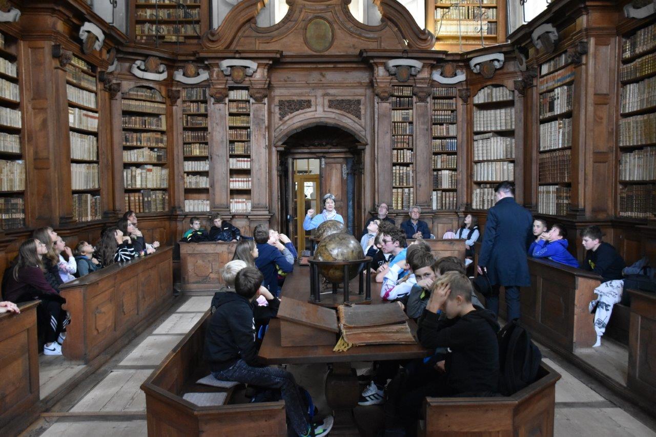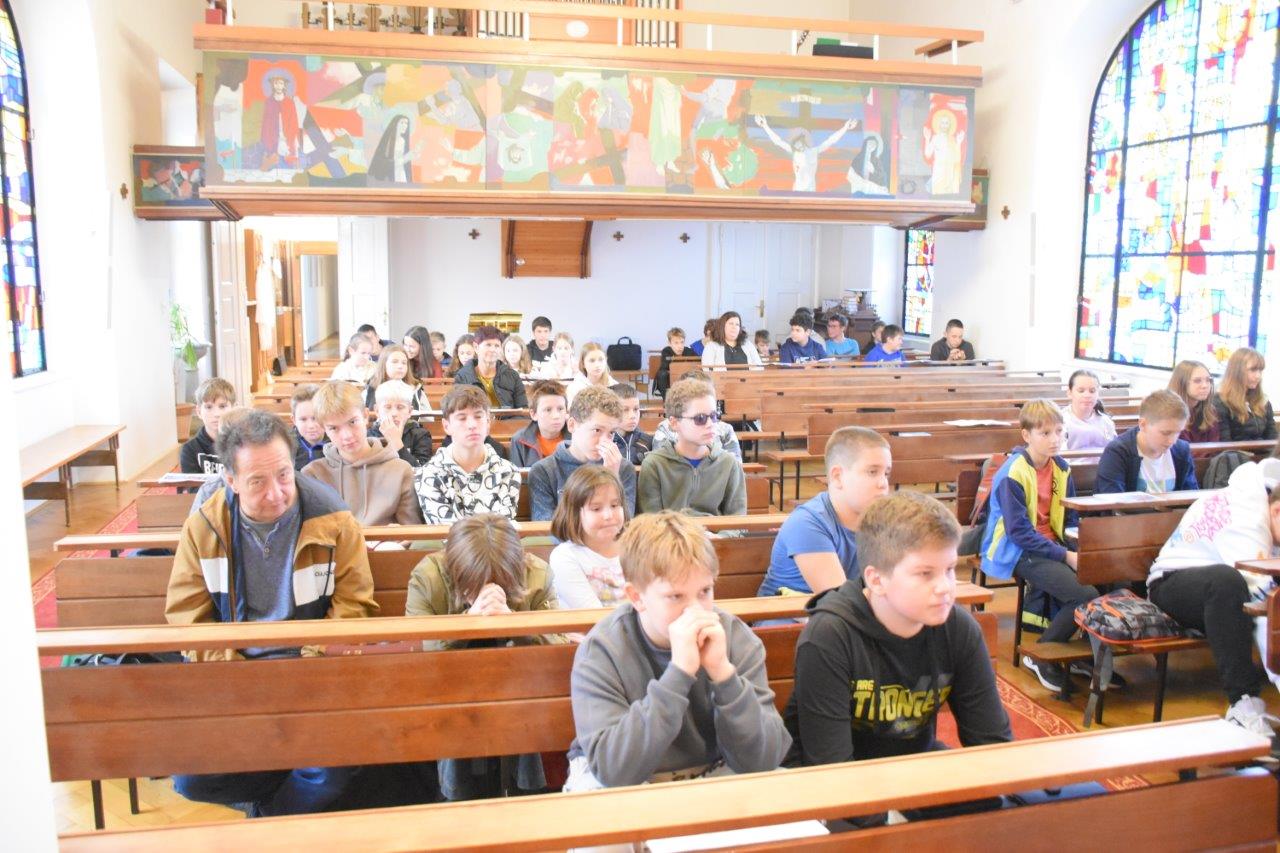 Po prihodu v Ljubljano nas je pot najprej peljala v bogoslovje. Tam nas je pričakal naš bogoslovec Blaž Baligač, ki nam je najprej pokazal jedilnico, kjer smo se potem tudi okrepčali s keksi in sokom. Nato smo si ogledali bogoslovno knjižnico, ki hrani stare in dragocene knjige. Nato smo imeli v kapeli sv. mašo, ki jo je ob somaševanju duhovnikov vodil g. Martin Zlobko, rektor Bogoslovnega semenišča. On nas je tudi prijazno nagovoril in nas navduševal, da bi še bolj goreče opravljali ministrantsko službo.