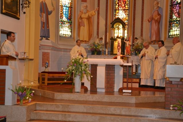 Po molitveni uri pred Najsvetejšim je kapelski župnik Frančišek Horvat ob somaševanju štirih duhovnikov daroval sveto mašo in v pridigi spregovoril o pomenu trpljenja. Shoda se je udeležil tudi škof dr. Peter Štumpf, ki je bil med mašo v spovednici na razpolago za sveto spoved, po maši pa je ob grobu Božjega služabnika Danijela Halasa spregovoril o postopku, ki ga v Rimu nadaljuje novi postulator dr. David Kraner. Povabil je k zaupni molitvi in k priporočanju Božjemu služabniku, saj se že kažejo sadovi ? uslišanja po njegovi priprošnji.