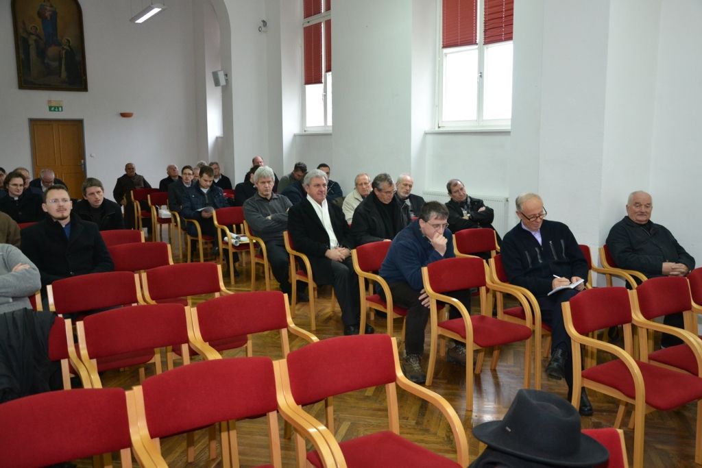 Rekolekcija se je začela v župnijski cerkvi sv. Mihaela z meditacijo, ki jo je podal škof dr. Peter Štumpf. Spregovoril je o Mariji, ki je obiskala Elizabeto in vedno znova obiskuje tudi nas. Škof nas je spodbudil k pravi pobožnosti do Marije in nato vodil molitveno uro pred Najsvetejšim, ko smo molili za duhovnike, za družine in za dobro pripravo na škofijski misijon. Molili smo tudi za beatifikacijo Božjega služabnika Danijela Halasa, ki nam je velik zgled pričevalca za evangelij. Po molitvenem delu srečanja, ki se je končal s sveto spovedjo, se je v prostorih Marijanišča nadaljeval pogovorni del. Škof dr. Peter Štumpf je spregovoril o pripravi na škofijski misijon in nakazal osrednje dogajanje, ki bo strnjeno okrog devetih prvih četrtkov, petkov, sobot in nedelj od adventa 2015 do praznika Marijinega vnebovzetja 2016. V pripravi na misijon se bodo duhovniki skupaj s škofom srečavali k skupni molitvi vsak drugi četrtek v mesecu v stolnici. Škofove besede o škofijskem misijonu je nadaljeval voditelj Pastoralne službe dr. Franc Zorec in potem vodil pogovor, v katerem so duhovniki nanizali več dobrih izkušenj in dodali nekaj spodbud, da bi misijon prav potekal in obrodil sadove.