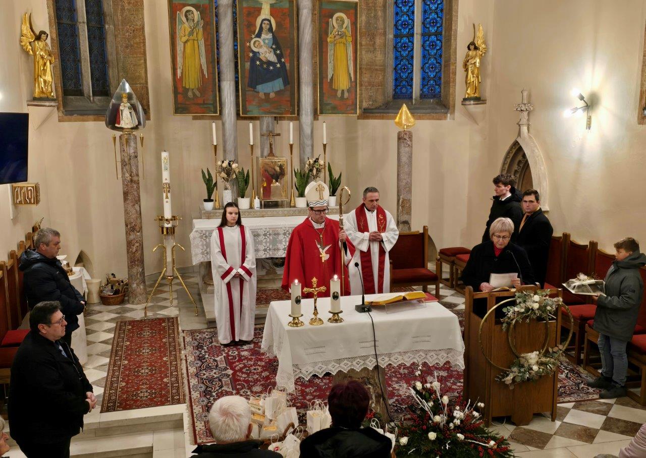 Župnija Tišina je v soboto, 22. novembra pripravila srečanje zakonskih jubilantov, ki so pri sv. maši Bogu zahvalili za dar skupnega življenja v zakonu. Cerkveni pevci pa so za dar lepega petja zahvalo izrekli ob godu zavetnice cerkvenega petja sv. Cecilije. Sveto mašo ob tej priložnosti je daroval škof dr. Janez Kozinc, katerega so tamkajšnji verniki skupaj z župnikom kot župnija prvič pozdravili in sprejeli v župnijski cerkvi Marijinega rojstva v tišinski župniji. Hvala gospodu škofu za darovano sv. mašo ter za nagovor jubilantom in pevcev. Zahvalili so se tudi sodelavcem župnijske Karitas, za ta lepo pripravljen dogodek, za pripravljena darila slavljencem in pogostitev, ki je sledila po sv. maši.