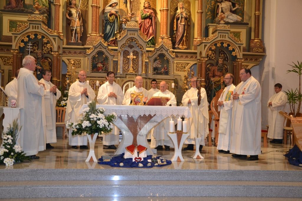 Ob štirih se je začela molitvena ura pred Najsvetejšim, ki jo je vodil domači župnik Ivan Krajnc. Sveta maša se je začela s slovesnim vstopom številnih ministrantov, devetih duhovnikov in škofa dr. Jožefa Smeja, ki je vodil somaševanje. V začetku je škofa, duhovnike, ministrante in vse zbrane pozdravil domači župnik in spomnil na obletnice, ki jih obhajamo. Z branjem bogoslužnih besedil so sodelovali predstavniki župnij lendavske dekanije. S petjem so bogoslužje bogatili pevci domačih pevskih zborov. Škof dr. Jožef Smej je v pridigi spregovoril o Božjem služabniku Danijelu Halasu in njegovem odnosu do domovine in do duhovnih poklicev. Nizal je spomine na svoja srečanja z Danijelom Halasom in misli o njem, ki je bil ves predan duhovniški službi in je znal mlade dobro usmerjati v življenje.