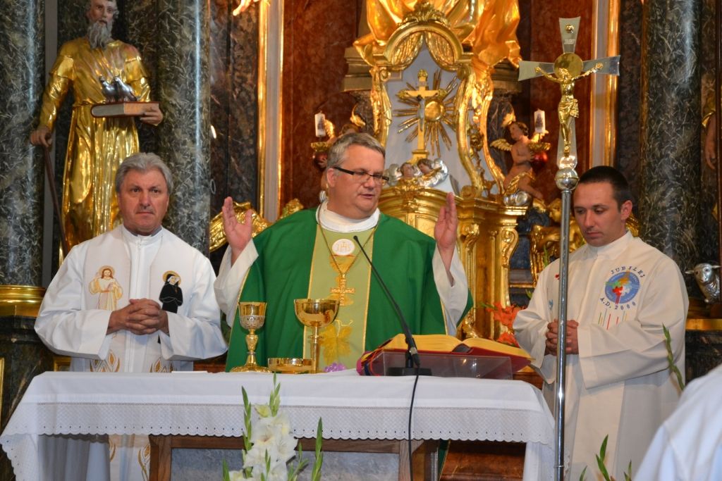 Sledila je sveta maša, ki jo je ob somaševanju duhovnikov vodil škof ordinarij dr. Peter Štumpf, ki je v pridigi nagovoril zbrane. "Hvala vam za čas, voljo, pripravljenost, predvsem pa za podaritev molitvenih darov za vaše župnije, za našo škofijo, za družine in škofijski misijon. Vaši molitveni darovi za Cerkev še posebej pomenijo žlahtni sad vaše vere." Škof je ob tem posebej spomnil pripravo na škofijski misijon: "Napovedal sem škofijski misijon z enim samim namenom, da bi se vsi ponovno in še bolj oklenili Jezusa." Člane ŽPS je povabil k pričevanju in sodelovanju: "Škofijski misijon je samo sklic teh zdravih in varnih čolnov, da se strnemo skupaj in varno pljujemo na ono drugo stran obale, kjer se bomo zasidrali, da vstopimo v večno življenje."