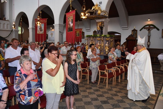 Škofa dr. Petra Štumpfa, duhovnike in množico vernikov v cerkvi in okoli nje je na slovenski praznik Marijinega vnebovzetja pozdravil tamkajšnji župnik p. Toni Brinjovc. Poudaril je, da so vsi prišli domov, saj so prišli k Mariji. Pri sveti maši so sodelovali domači bogoslužni sodelavci, s petjem pa turniški župnijski pevski zbor pod vodstvom organista Mateja Pucka. V pridigi je škof spregovoril o množici izbir, pred katere smo postavljeni. Tudi Marija je bila postavljena pred pomembno izbiro, izbrala je Božje materinstvo in tako nam je vedno blizu, vedno vzor, kako naj živimo, kako naj se obnašamo v tem zmedenem svetu kot moški in kot ženske. Po pridigi je škof vodil obnovitev posvetitve nebeški Materi Mariji, ki jo ponavljamo že trideset let, ker želimo živeti pod njenim varstvom. Ob koncu svete maše je škof blagoslovil cvetje in zelišče, ki so ga verniki prinesli kot znamenje Marijine lepote in vseh darov, ki jih po njeni priprošnji prejemamo. Po blagoslovu so škof in duhovniki zapeli litanije Matere Božje, medtem pa so verniki v globoki pobožnosti stopali okoli Marijinega oltarja in pred nebeško Mater polagali sovje prošnje in zahvale.
