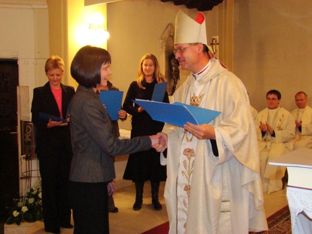 Ob sklepu sv. maše je škof trem slušateljicam, ki so končale prvo stopnjo Katehetsko pastoralne šole, izročil spričevala. Slušateljici Klavdiji Dominko, ki je v minulem študijskem letu edina končala študij in naredila zaključno nalogo, pa je izročil diplomo. Diplomantka se je z izbranimi besedami zahvalila škofu, predavateljem in vodstvu Katehetsko pastoralne šole, mentorju mag. Francu Zorcu ter vsem, ki so ji pomagali do cilja.