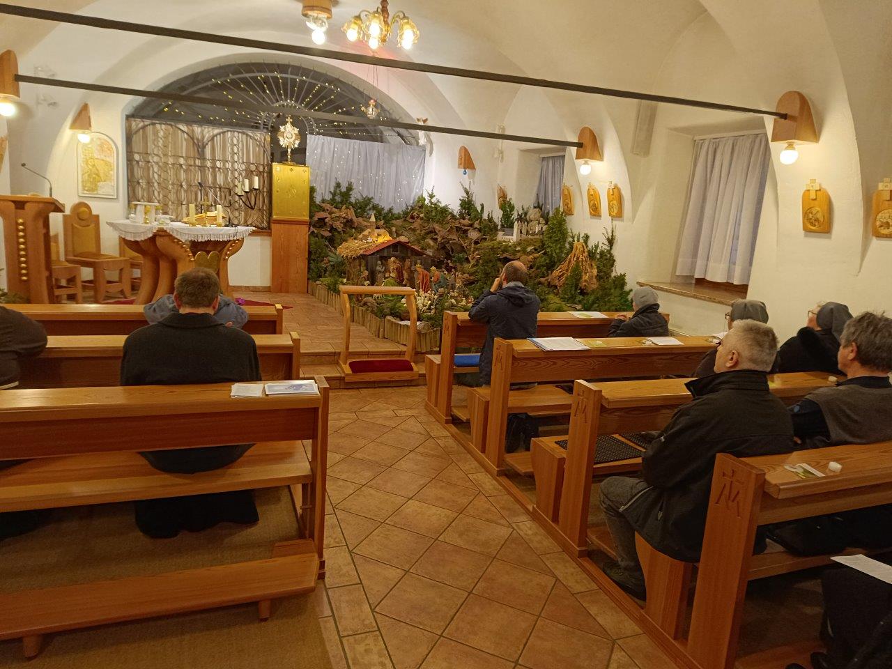 Najprej smo se ob 16.30 zbrali pri molitvi pred Najsvetejšim, kjer smo se ob rožnem vencu duhovno poglobili v misli sv. Frančiška in izročili Jezusu svoje prošnje. Sledila je sveta maša z večernicami, kjer smo se zahvaljevali za svoje brate in sestre. Sestre klarise so vodile psalme z njihovimi napevi, mi pa smo sodelovali vsak po svojih zmožnostih in darovih.