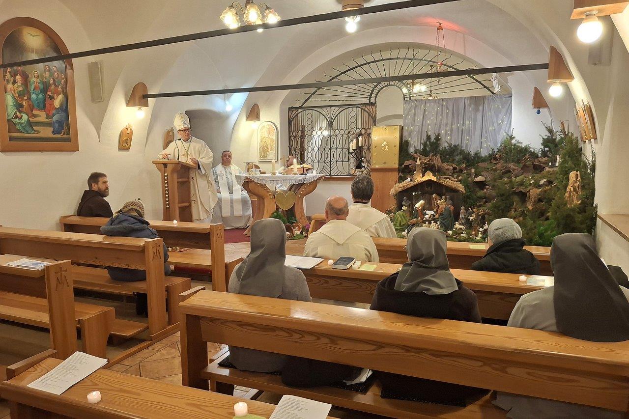 G. škof ordinarij nas je spodbujal k zvestobi in potrpežljivosti, kakor sta jo živela tudi Simeon in Ana, saj Bog vedno izpolni svoje obljube. Tudi za nas je Božji klic povabilo k vztrajnosti v vsakdanjem redovnem življenju, v odkrivanju posebnih darov, ki jih Bog po nekem redu želi deliti Cerkvi. K temu pa nam pomaga poslušnost Svetemu Duhu ter post in molitev. Škof nas je povabil tudi k občestvenemu življenju, »ki nam pomaga hoditi skozi 'puščobne čase'«, in oznanjati s pričevanjem. Zahvalil se je za navzočnost redovnikov in redovnic, ki so za škofijo neizmeren dar s potrpežljivim oznanjevanjem Božje ljubezni, in nam želel, da bi bili za vse »most, ki od tega sveta kaže k nebesom«.