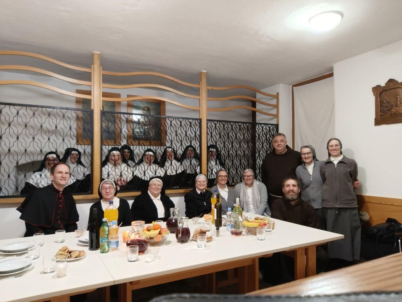 Po našem skupnem prazniku luči so nas sestre klarise tudi pogostile s svojo značilno večerjo. Bilo je zelo prijetno, sproščeno druženje; med drugim smo si povedali svoja imena, od kod prihajamo in kako živimo, ter se nasmejali ob anekdotah. To je bil pravi dan odprtih vrat. Zelo smo hvaležni za ta topel sprejem sester klaris, podelitev, gostoljubnost in sodelovanje. Zares smo začutili preprostost in veselje duha sv. Frančiška in sv. Klare. Priporočili smo se v njihove molitve in odšli z gorečo željo, da bi vsi rasli v bratski in sestrinski duhovnosti občestva.