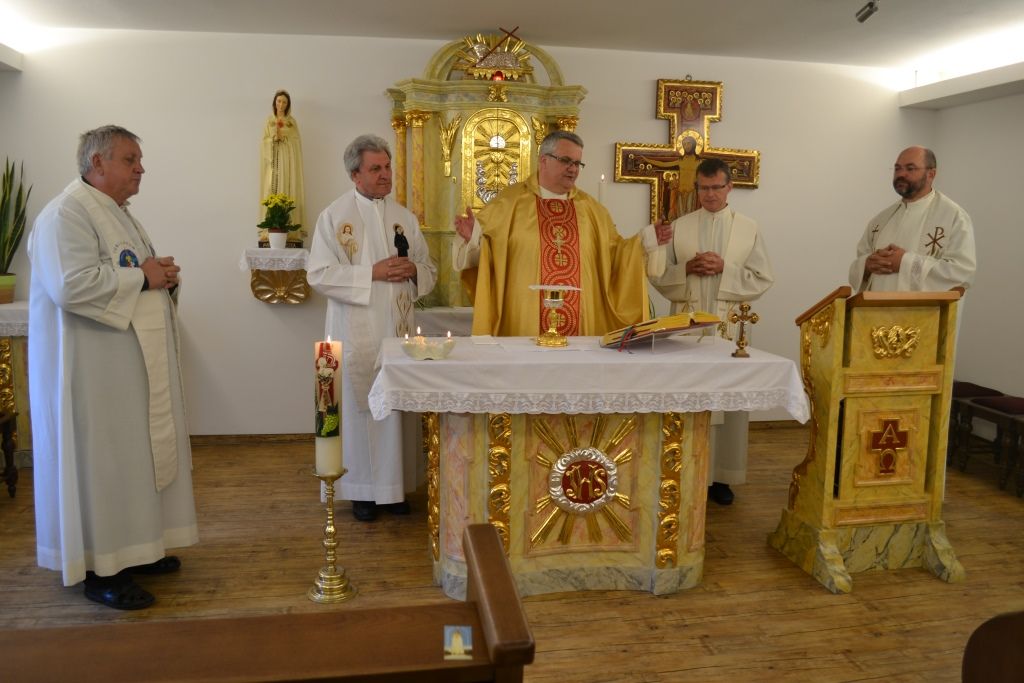 Sledila je sv. maša, ki jo je vodil škof dr. Peter Štumpf ob somaševanju zbranih duhovnikov. V pridigi nas je g. škof spodbudil, da v svojem delovanju, v odnosih do ljudi, s katerimi se srečujemo, odsevamo Njega, ki ga oznanjamo. Med sv. daritvijo je bil p. Ernest na razpolago za podeljevanje zakramenta sprave.