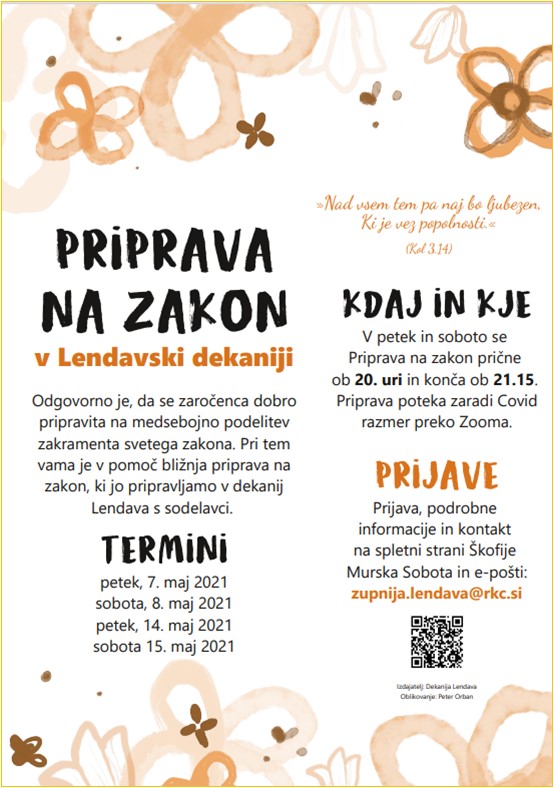 Odgovorno je, da se zaročenca dobro pripravita na medsebojno podelitev zakramenta svetega zakona. Pri tem vama je v pomoč bližnja priprava na zakon, ki jo pripravljamo v dekanij Lendava s sodelavci.
